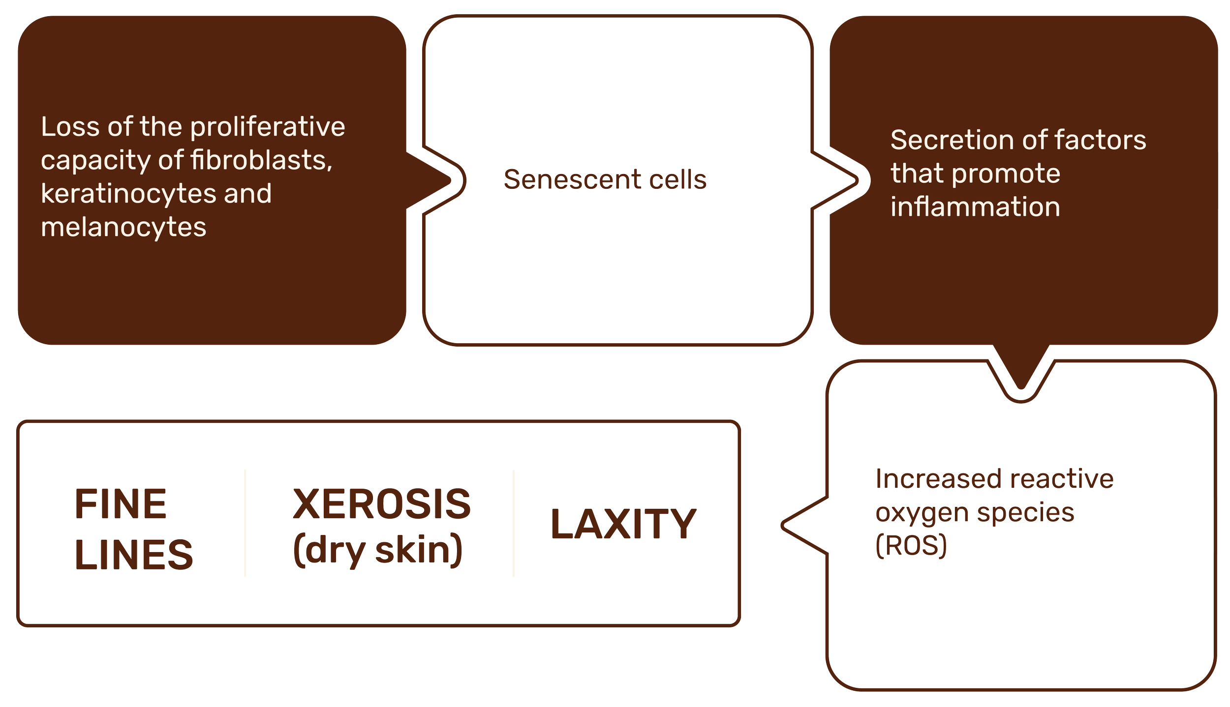 The epidermis, epidermal-dermal junction and dermis decrease in thickness à Skin barrier dysfunction and wrinkles.